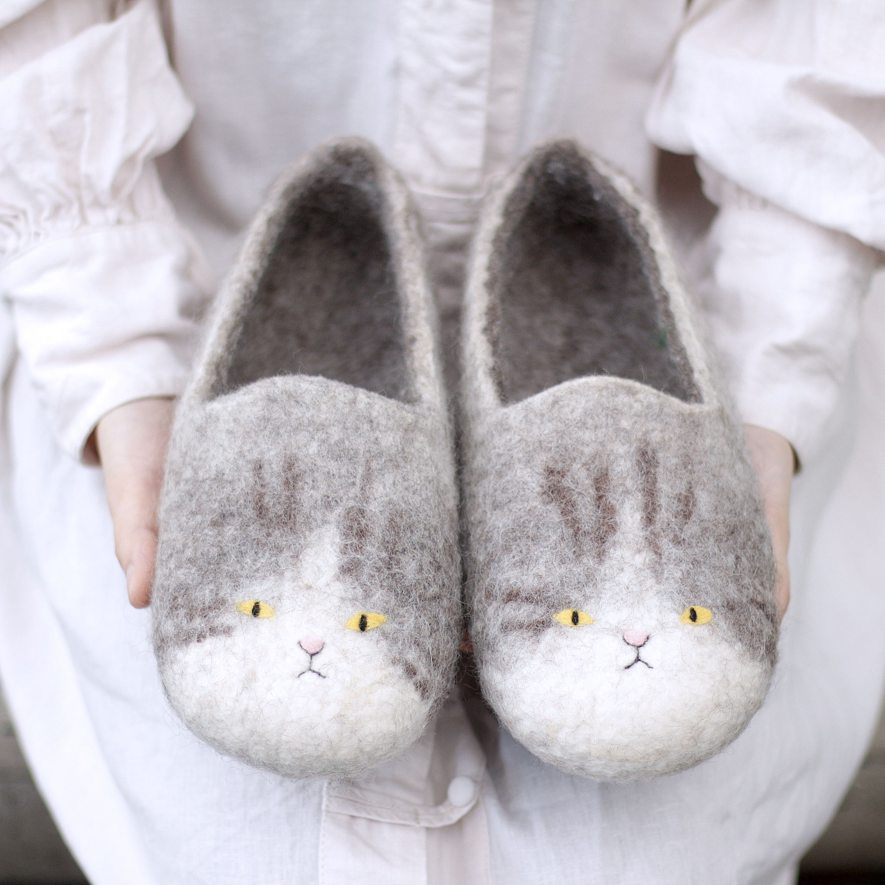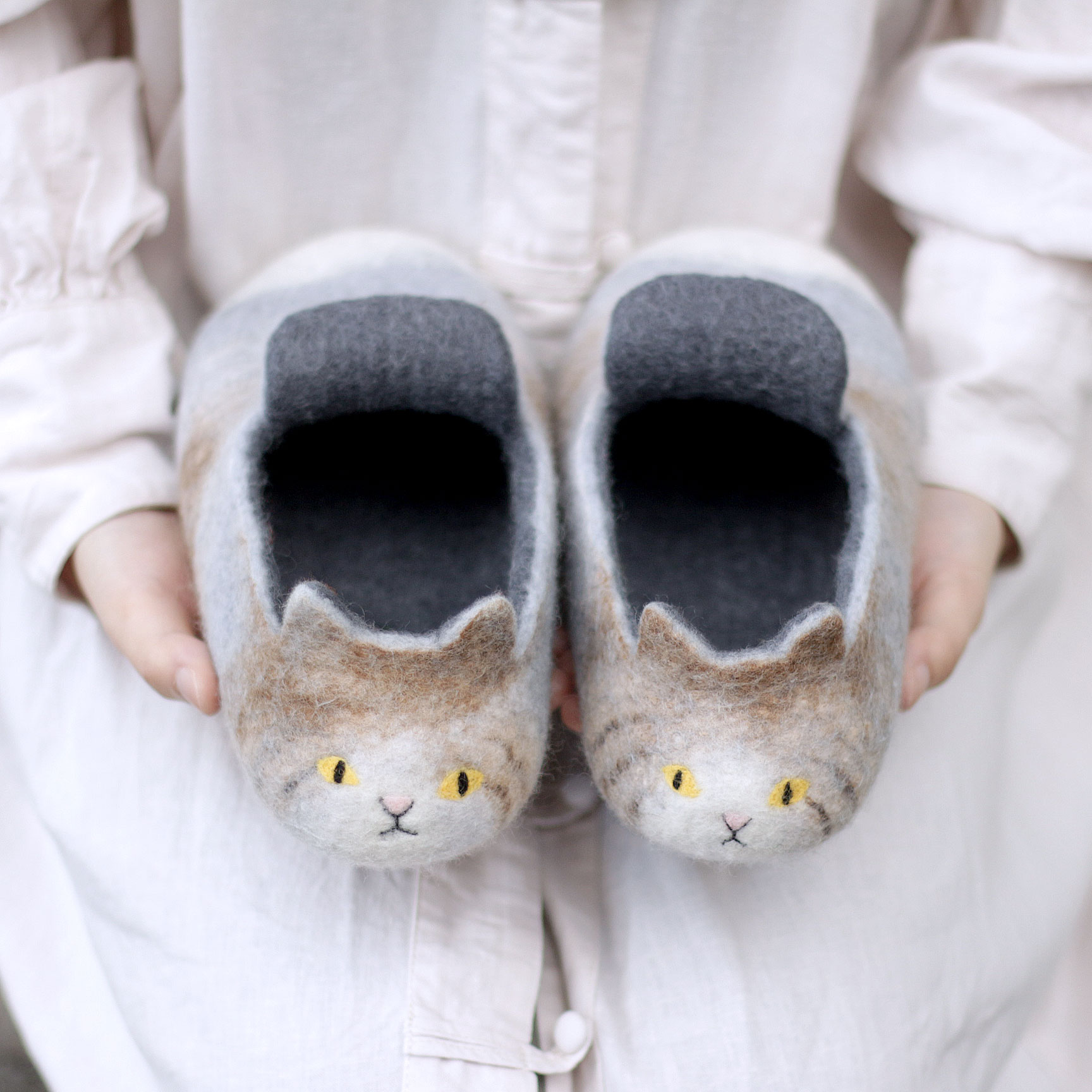 羊毛氈的貓咪拖鞋