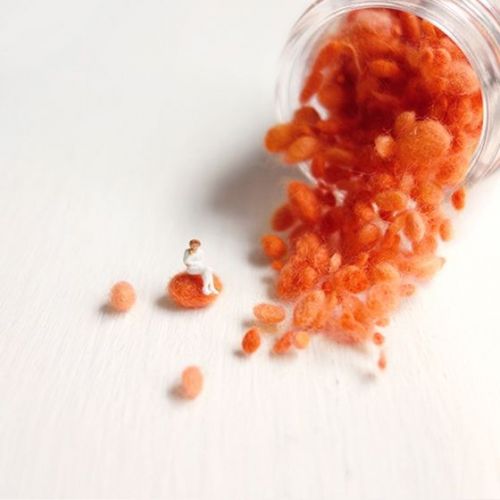 二種使用方式:混入羊毛中作為特殊質感或鋪陳於作品表面構圖用