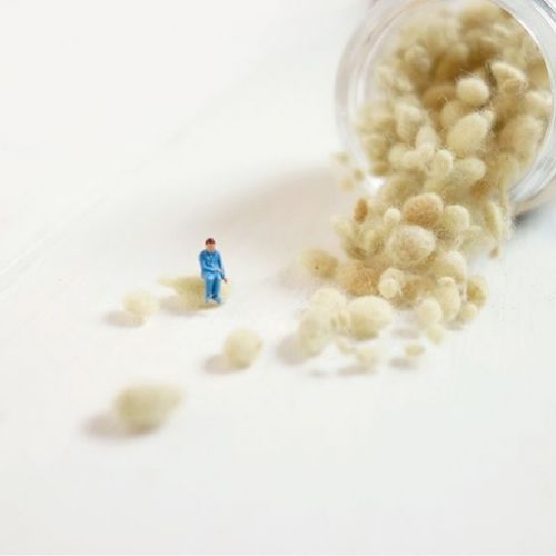 二種使用方式:混入羊毛中作為特殊質感或鋪陳於作品表面構圖用